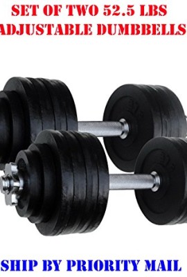 2 x 52.5 LBS Adjustable Forged Iron Dumbbells set. Overall 105 lbs d358