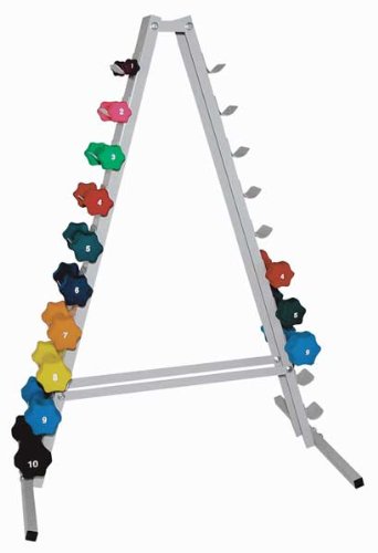 The RiversEdge Model VFR5953 Dumbbell Tower Storage Rack is a graceful design to store and display two full sets of 1 via 10 pound dumbbells.