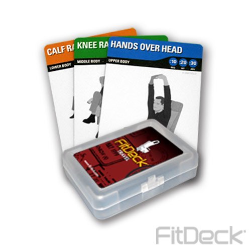 Each card has three fitness levels to accommodate different abilities (beginner, intermediate, advanced). Cards are held in a plastic cardholder making it easy to carry and draw cards even as on the go. Shuffle cards before every workout to get a random sampling of upper, middle, lower, and full-body exercises. Never spend another minute trying to make a decision what kind of exercises to do. FitDeck does the thinking for you. Just shuffle, draw, and go.