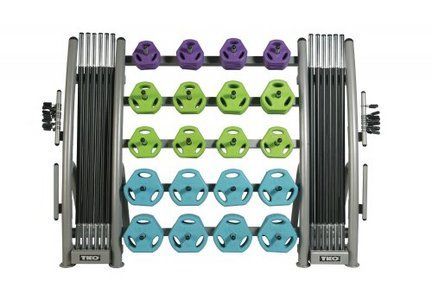 Specially designed rack helps to keep equipment clean, organized and maximizes the ground space / Unit allows for simple get entry to and weight selection
